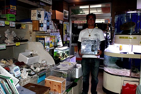早速 自分から ろ過槽も持ち 写真撮影のため カメラの前に立つ。