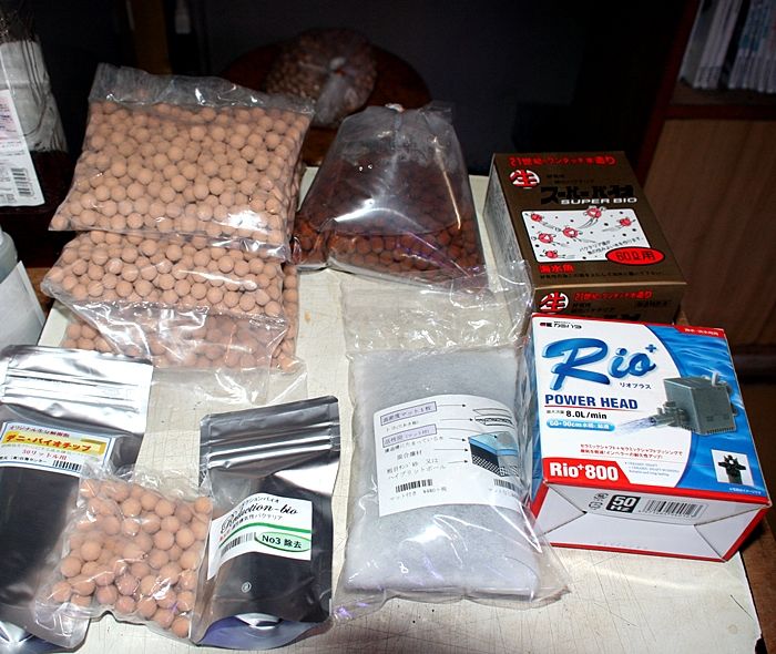 その他には 好気性バクテリアや 揚水ポンプ 活性炭 濾材用のハイブリットボールなど・・・・・・セットの中に付いてくる。