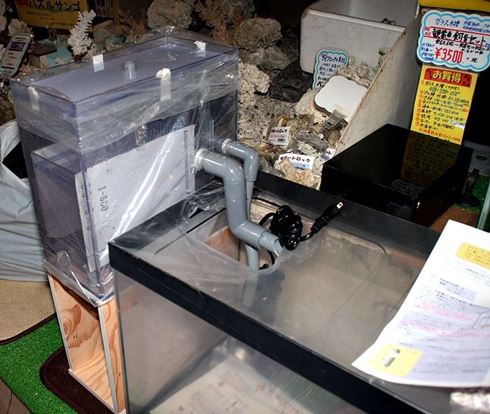 これが 実際 弊店で 稼働している タワー型ろ過槽ジュニアなんだ。