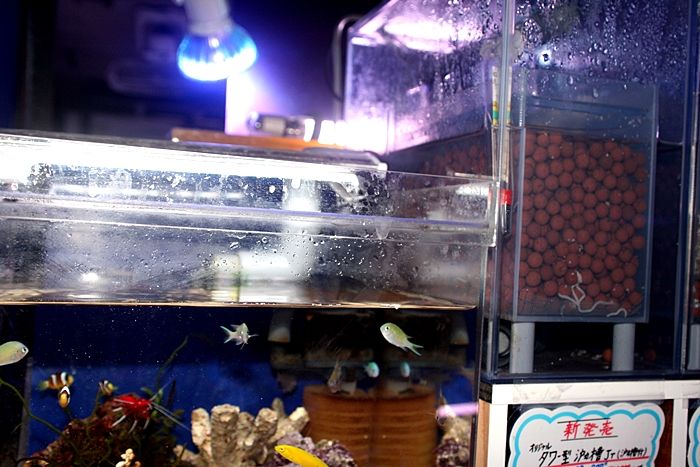 通常 上部濾過槽の場合、水槽の上部に濾過槽があり、かつ 揚水ポンプやヒーターが水槽の中に入る。