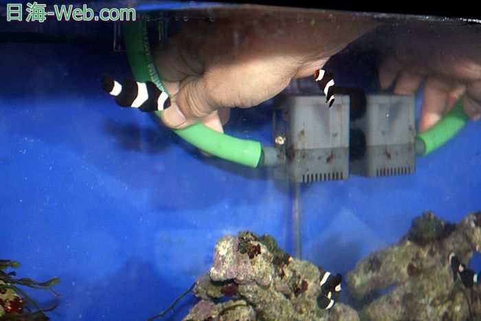 下の水槽から 飼育水が くみあがってきた。