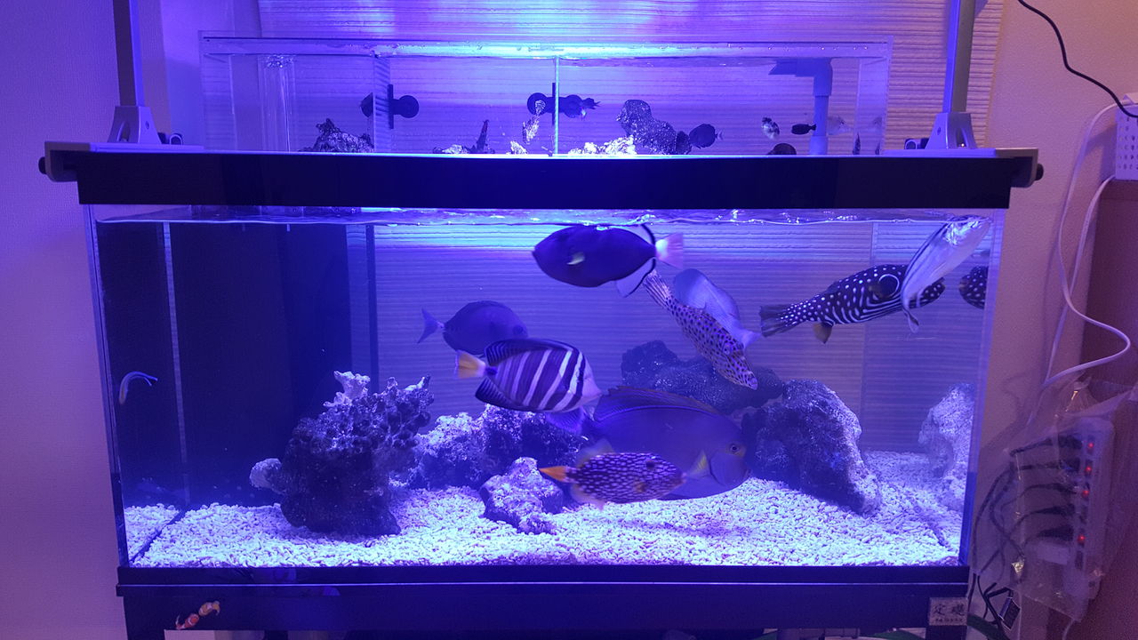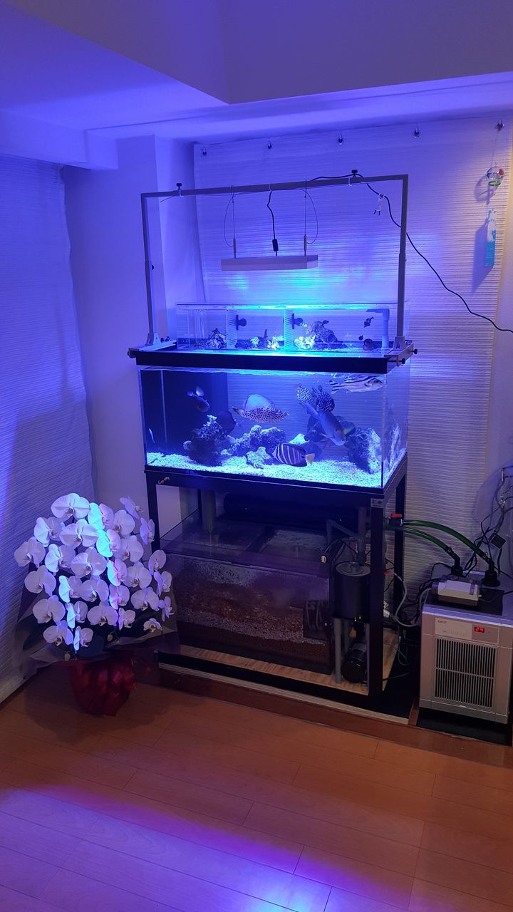 今回はこの水槽をサイズは同じ900×450×450のアクリル水槽日海センターフルセット(マゴタンク付き)へリニューアルさせていただきました!