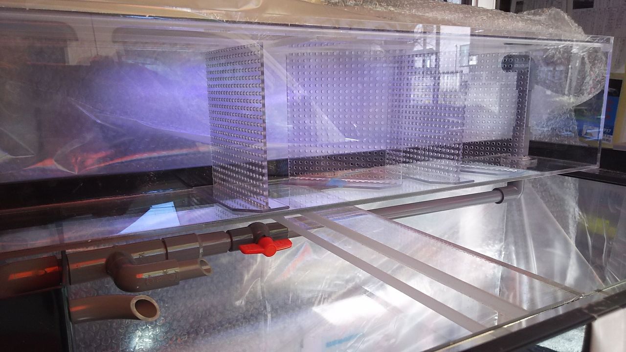 いろんな生体を飼育してらっしゃるカリブさんのご要望で移動式仕切り板付きマゴタンクを乗せた、オール8ミリの900アクリル水槽です♪