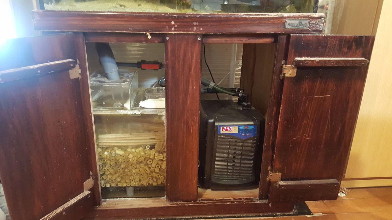 NK式下置きろ過槽にUV殺菌灯と硝酸塩還元塔、そしてクーラーが付くフル設備です!