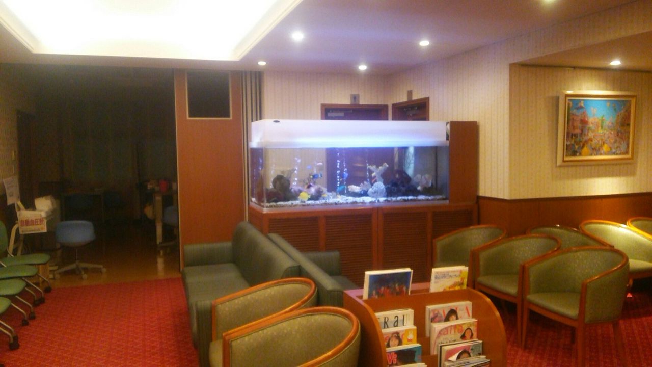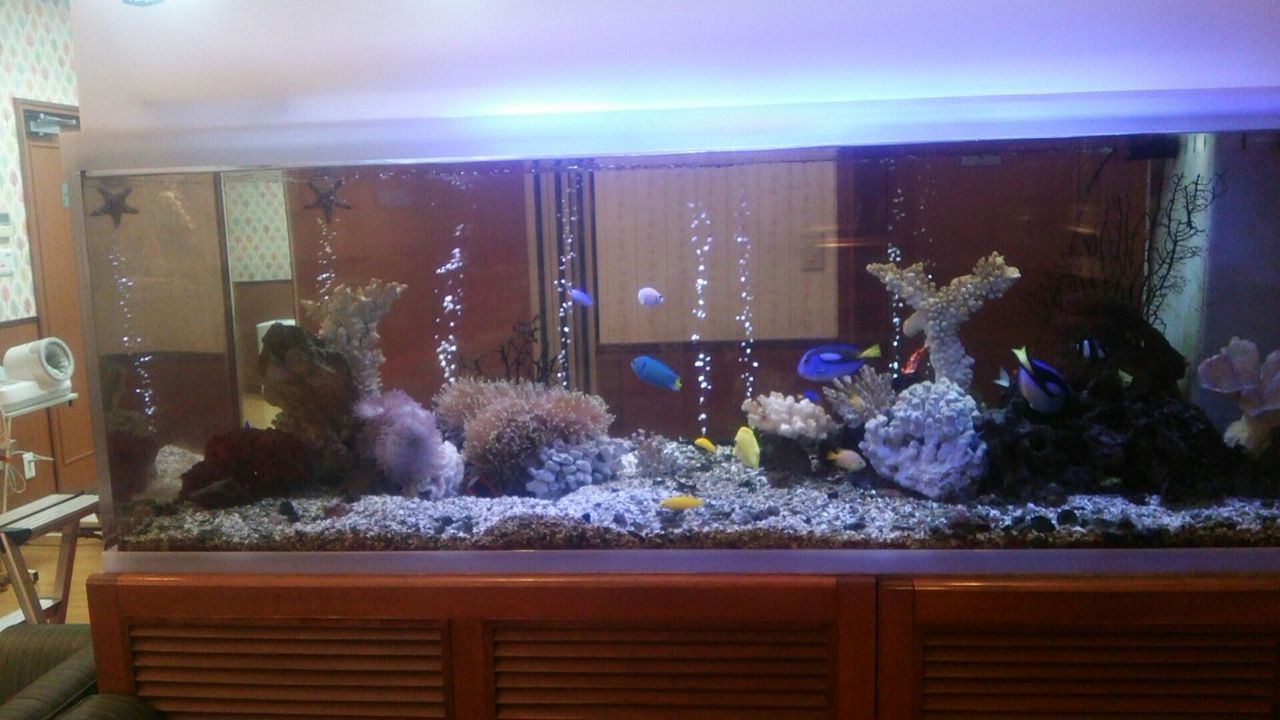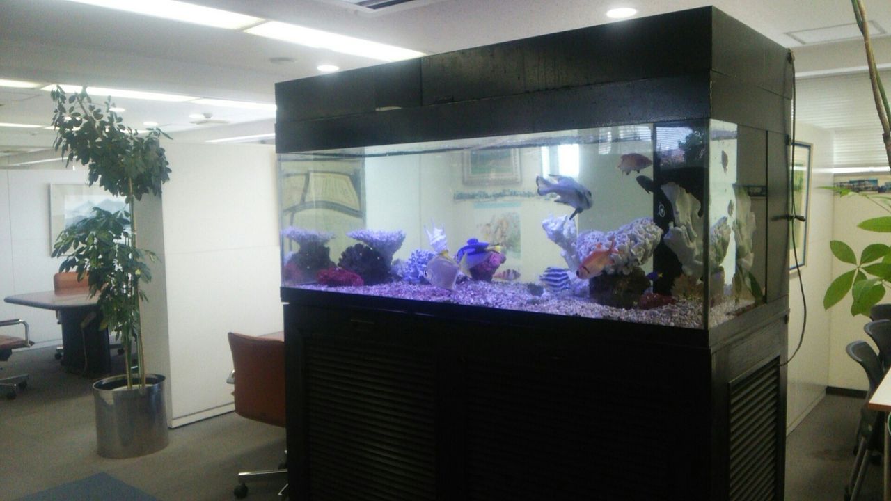 これは川崎市の産婦人科医院の180cmの、大型海水魚水槽だよ。