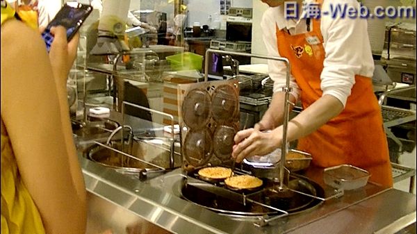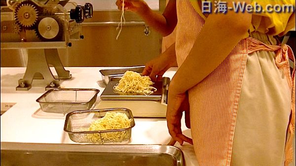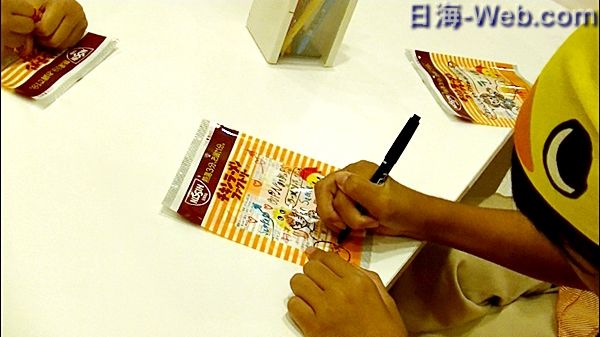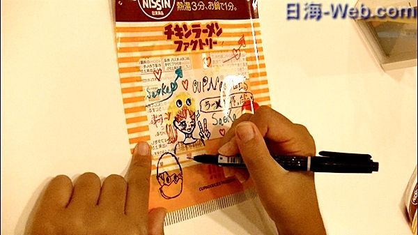 そう 今 揚げている 麺を入れる 包装も 自身で書く。