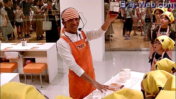 作りかたを教えてくれる 先生と 口を開けて聞いている参加者たち