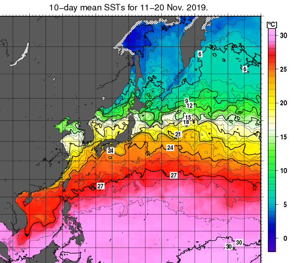 そこで 今現在 今月の 水温データを見てみよう・・・・