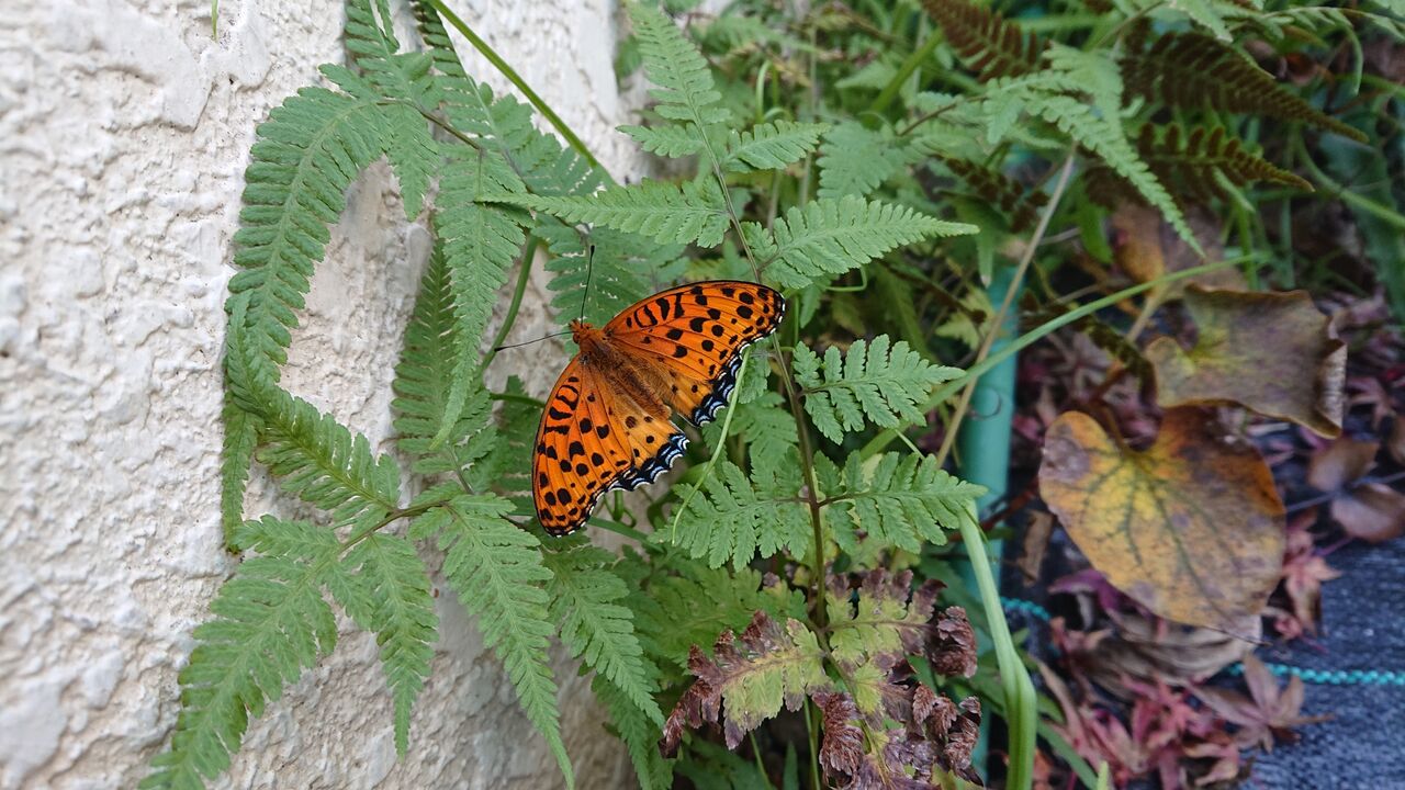 これは、フタホシキツネベラ君だよ。黄色と オレンジの美しいベラだよ。丈夫で飼育も容易ですよ。あ、それとね、お魚ではないんだけどね、店先で面白いチョウチョを見つけたんだよ。寒いのに大丈夫なのかな?