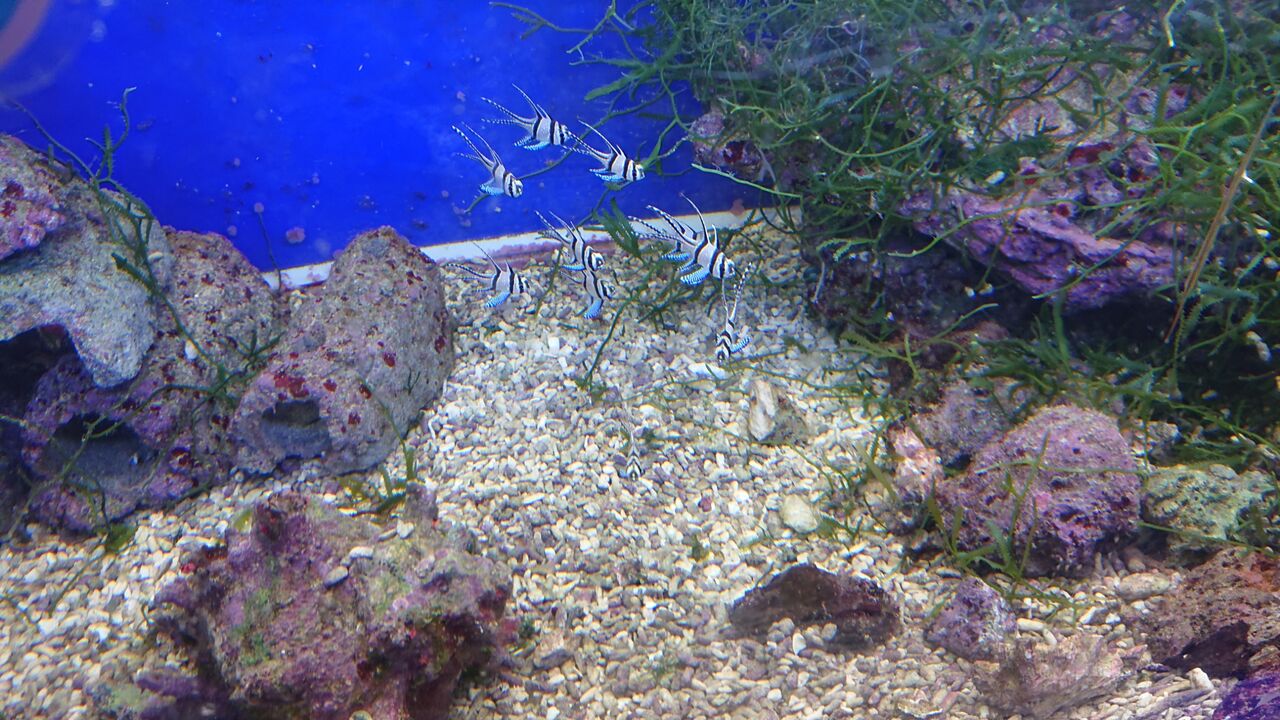 これは、上からイトヒキテンジクダイと アマノガワテンジクダイだよ。大人しく 丈夫で飼育も容易ですよ。水槽の中層に 群れて浮かんでる習性があるんだよ。 小型水槽でも、複数飼育が楽しめる 代表的な魚達だよ。まあ、数多く色んな 魚を飼育するのも面白いけどね、同じ魚を 複数で飼育するとね、それぞれの個性が 引き立ってね、又違った楽しみ方ができるんだよ?では、ご興味お持ちいただきましたなら、下記にアクセス宜しくね。お魚大好き君でした。■日海センター:オンラインショップは こちら■