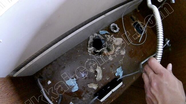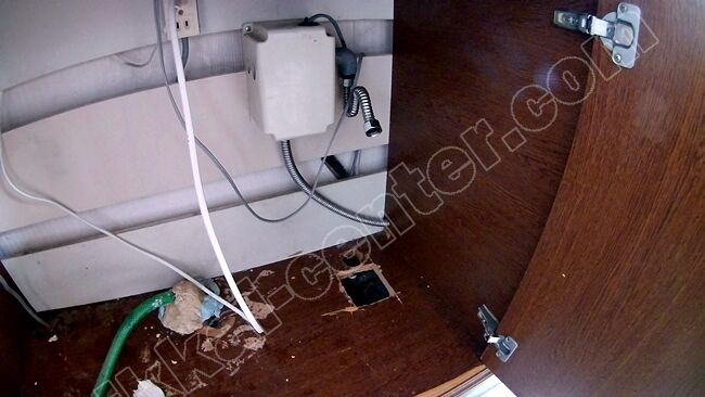 水槽の下に水道の配管があり、この撤去処理が一苦労だったのだよ。これは、あらかじめお願いしていた、水道工事屋さんにお願いしたんだよ。