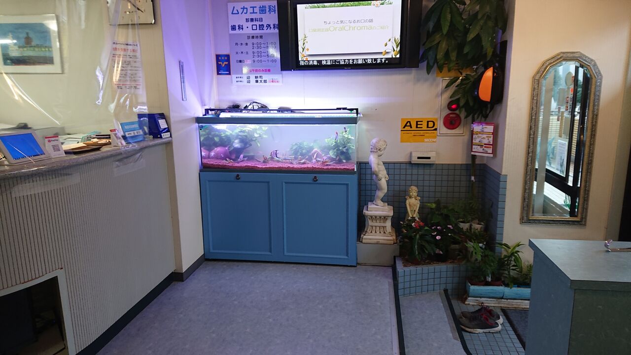 お魚大好き君だよ。先日定期的にね、メンテナンスを任されている歯科医院さんの、水槽 の交換に行ってきたんだよ。120cmの大型の