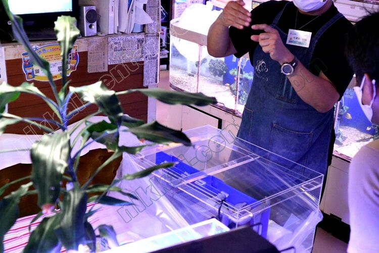 先日、今まで45センチ水槽で楽しんでいただいていたお客様がその楽しみを広げるためにご来店いただいていろいろ魚や水槽の話をさせて頂き、かんたん槽にご興味を持っていただきました♪(^^)