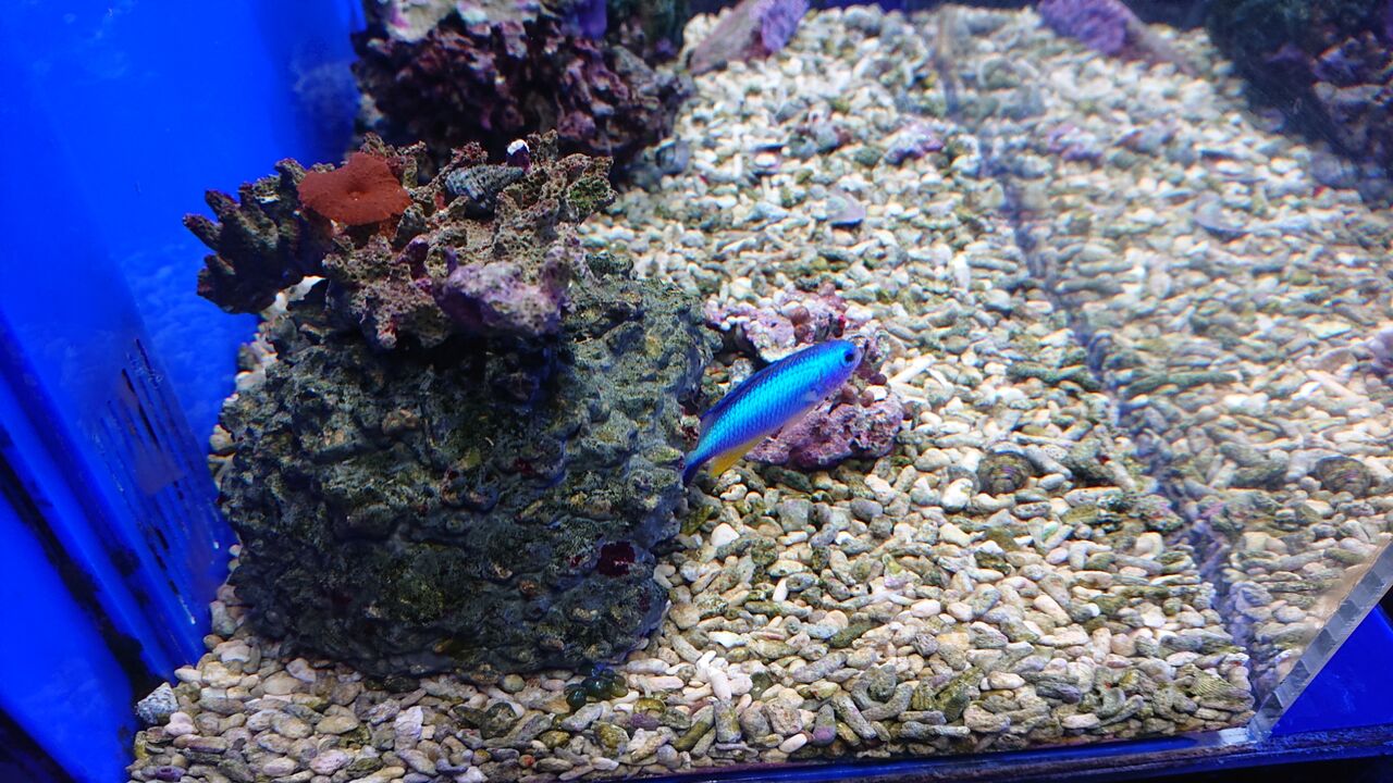、ネオンダムセル、イエローベリーダムセル、だよ。アレンズは、環境により、ブルーの発色が変化するのが面白いんだよね。コバルトは、ブルーを代表する美しい魚だ。気が強いのが、たまにキズだけどね⁉️ネオン君は、濃紺の体に光るブルーのラインが、