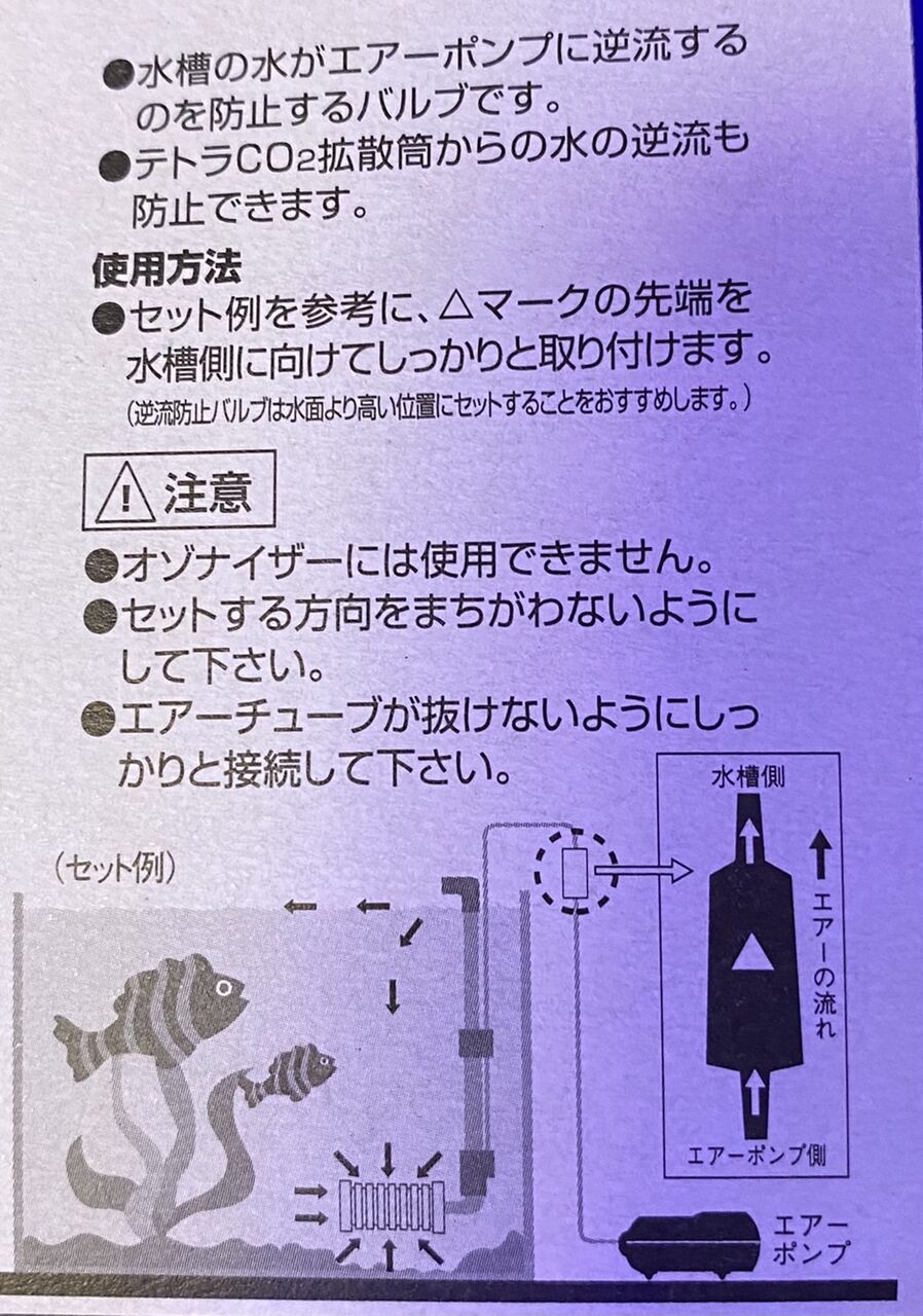 逆流してしまうとエアーポンプ内に水が入るので、