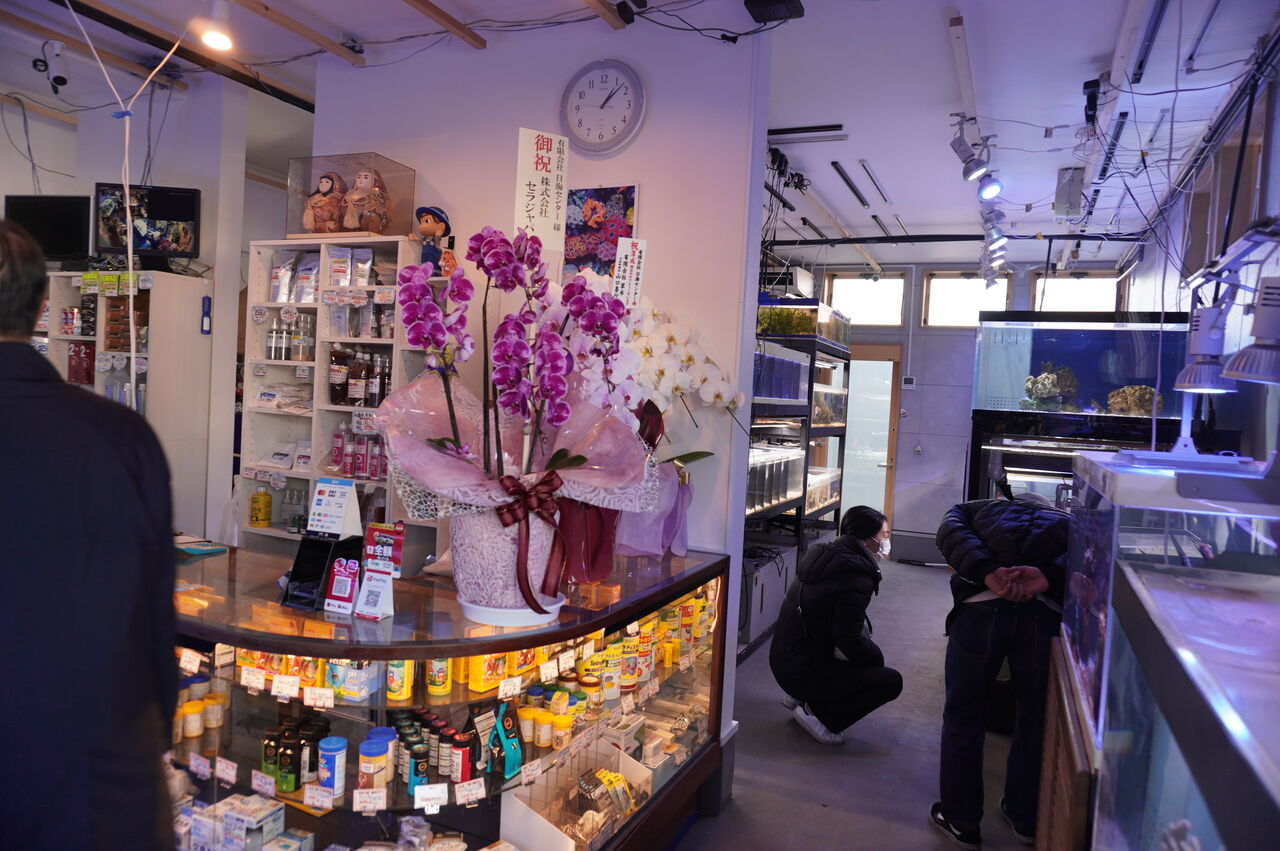 開店祝いに花を添える やっぱー いいですね うれしいですね 一気に 店内 華やかに なりました