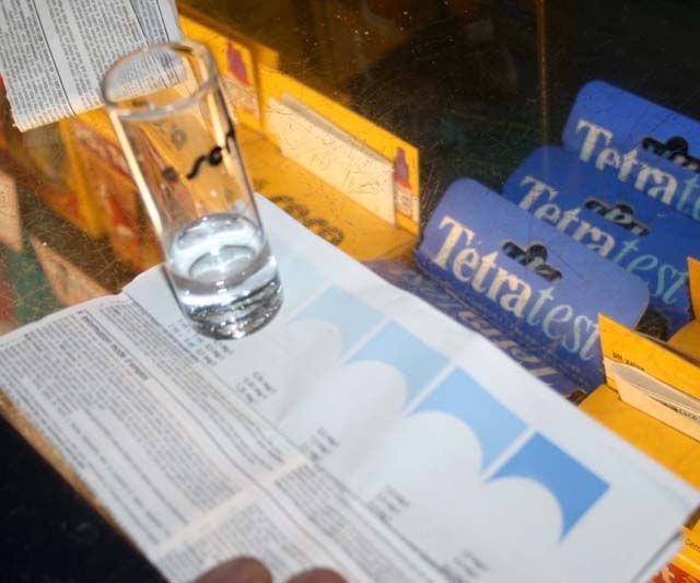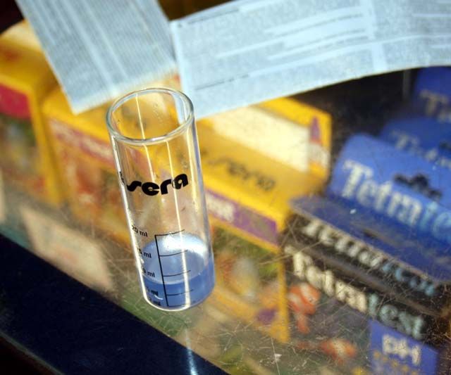残るはカルシウム。 カルシウムの測り方はちょっと違う。まず測りたい水槽の海水を5cc採るんだ。