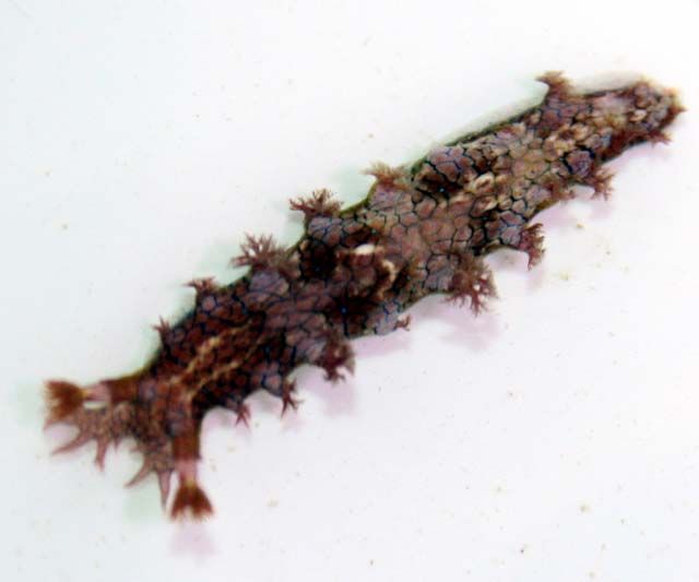 これ、ウミウシの仲間なんだけど、専門書にも載っていない。 種類はなんであれ、ツツウミヅタをいじめるやつは、くまぱぱが 承知しないぞ。