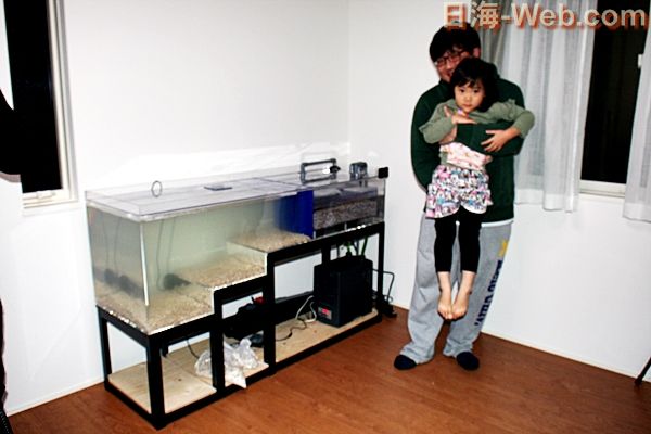 (写真は以前購入された方々です かんたん槽NK-60ツイン センターろ過タイプ 二部屋水槽があります)