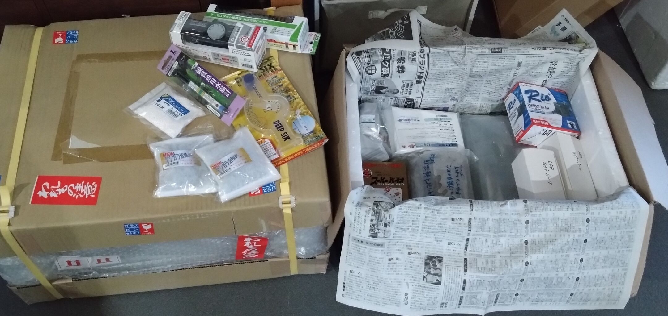 かんたん槽の発送はパーツも多く破損しないように慎重に梱包させていただいております。