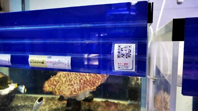 あなたのスマホに 現在 この水槽に入っている お魚の写真と 名前と 値段を 知りえる事が出来るんですよ。