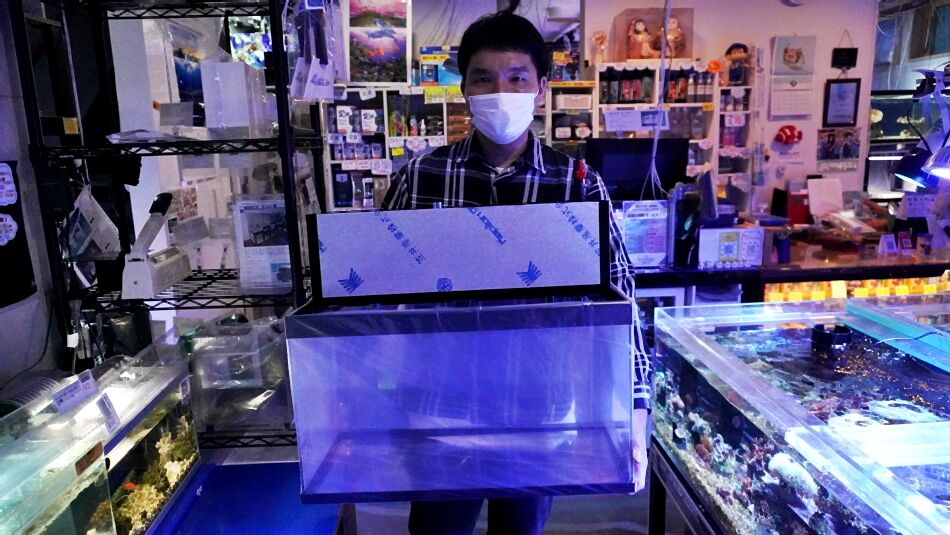 600×300×350のアクリル水槽と600上部ろ過槽です!