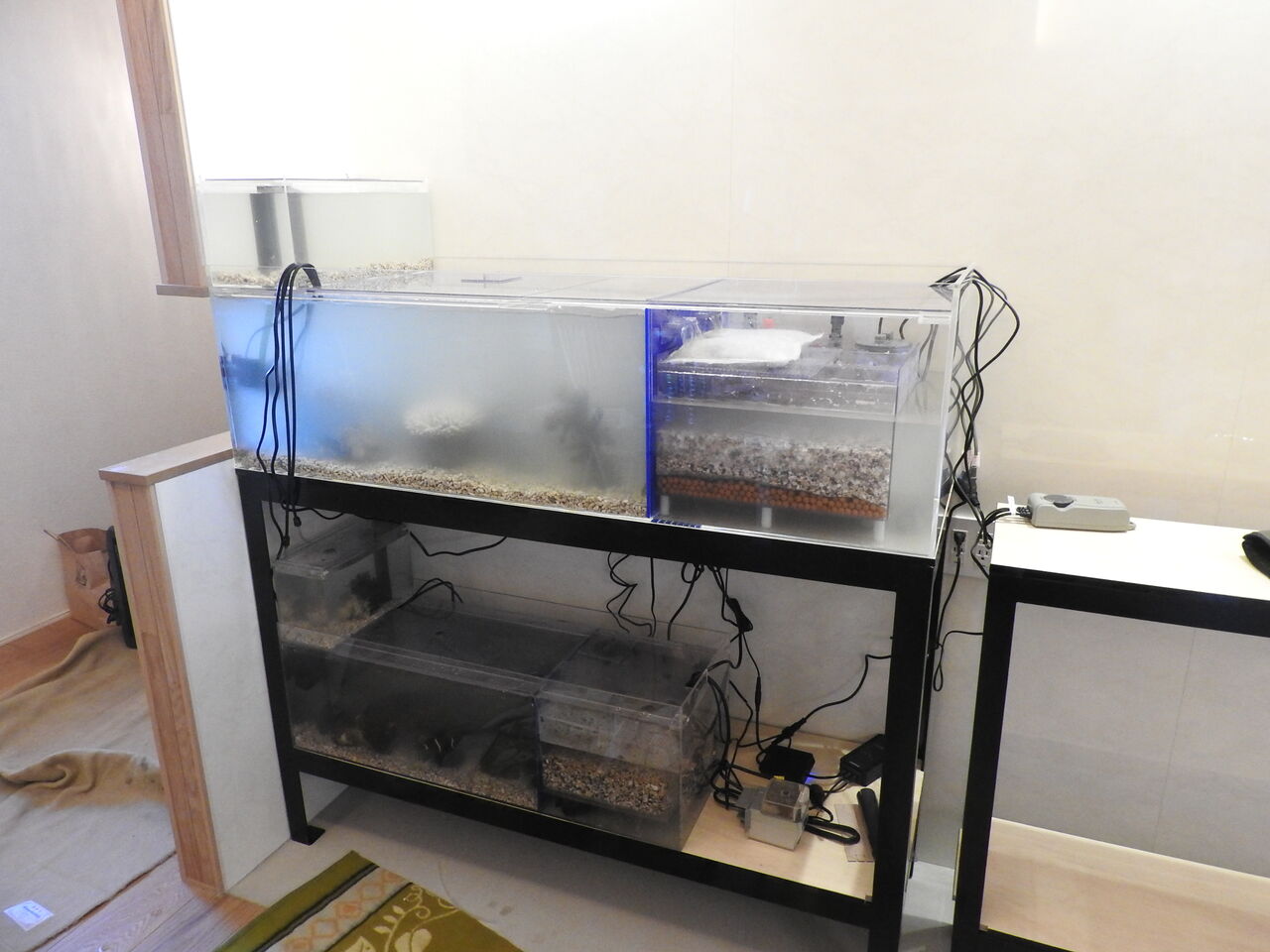 今までの水槽は新しいお家で、淡水の熱帯魚水槽として生まれ変わるそうです♪