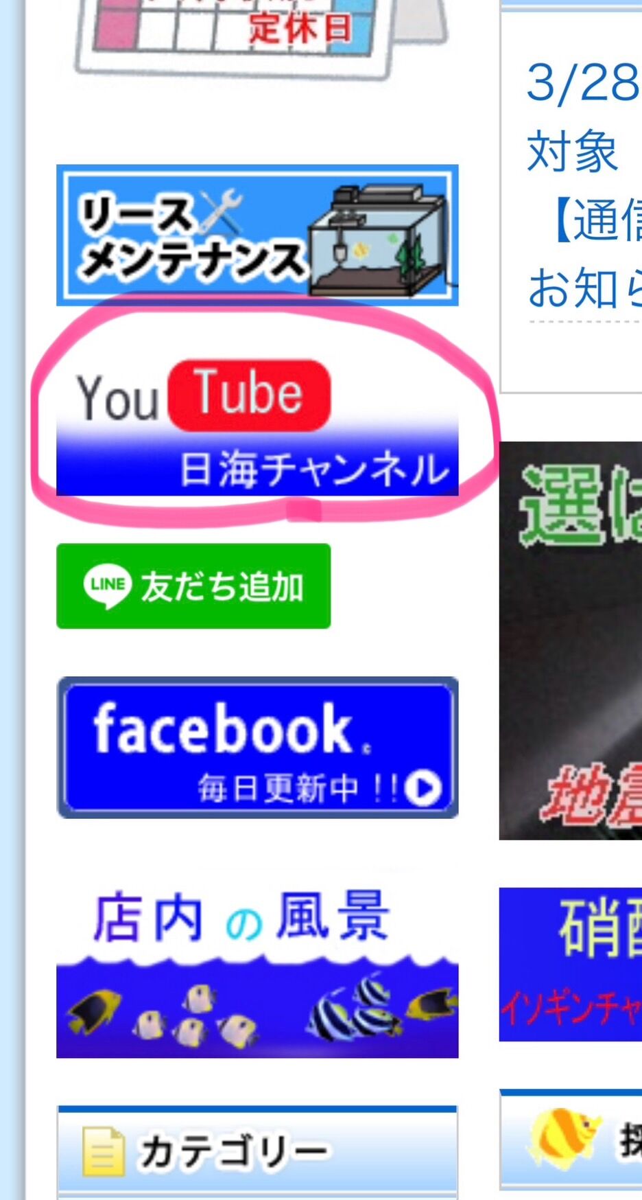 左側にYouTubeの日海チャンネルがあります(^O^)/
