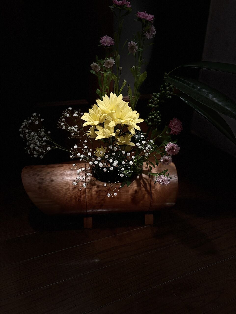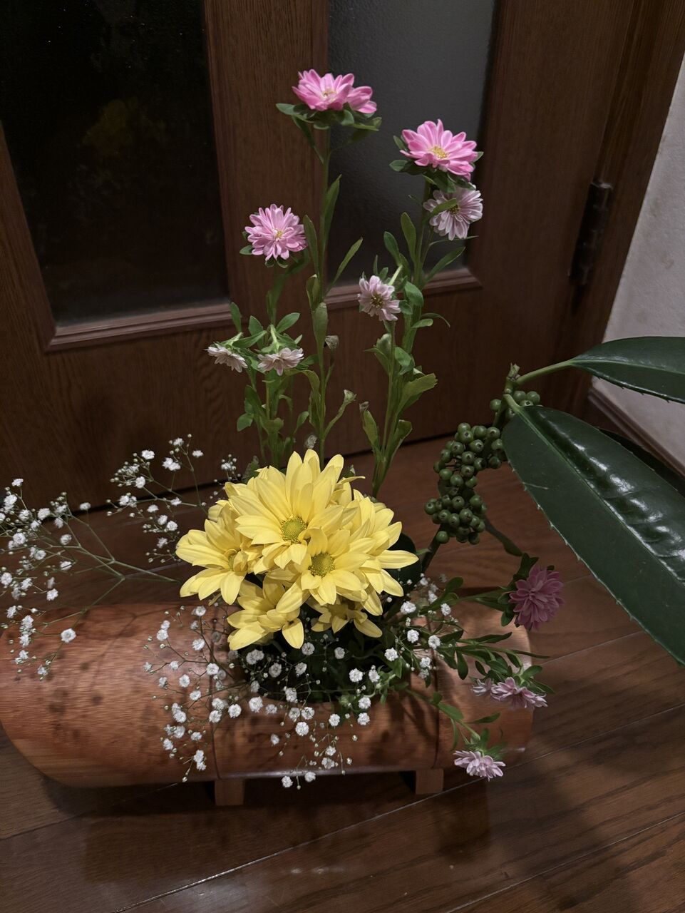 周囲で お花たちを 引き立てているのが アワダン 常緑性の低木。グリーンの大きな葉が魅力的