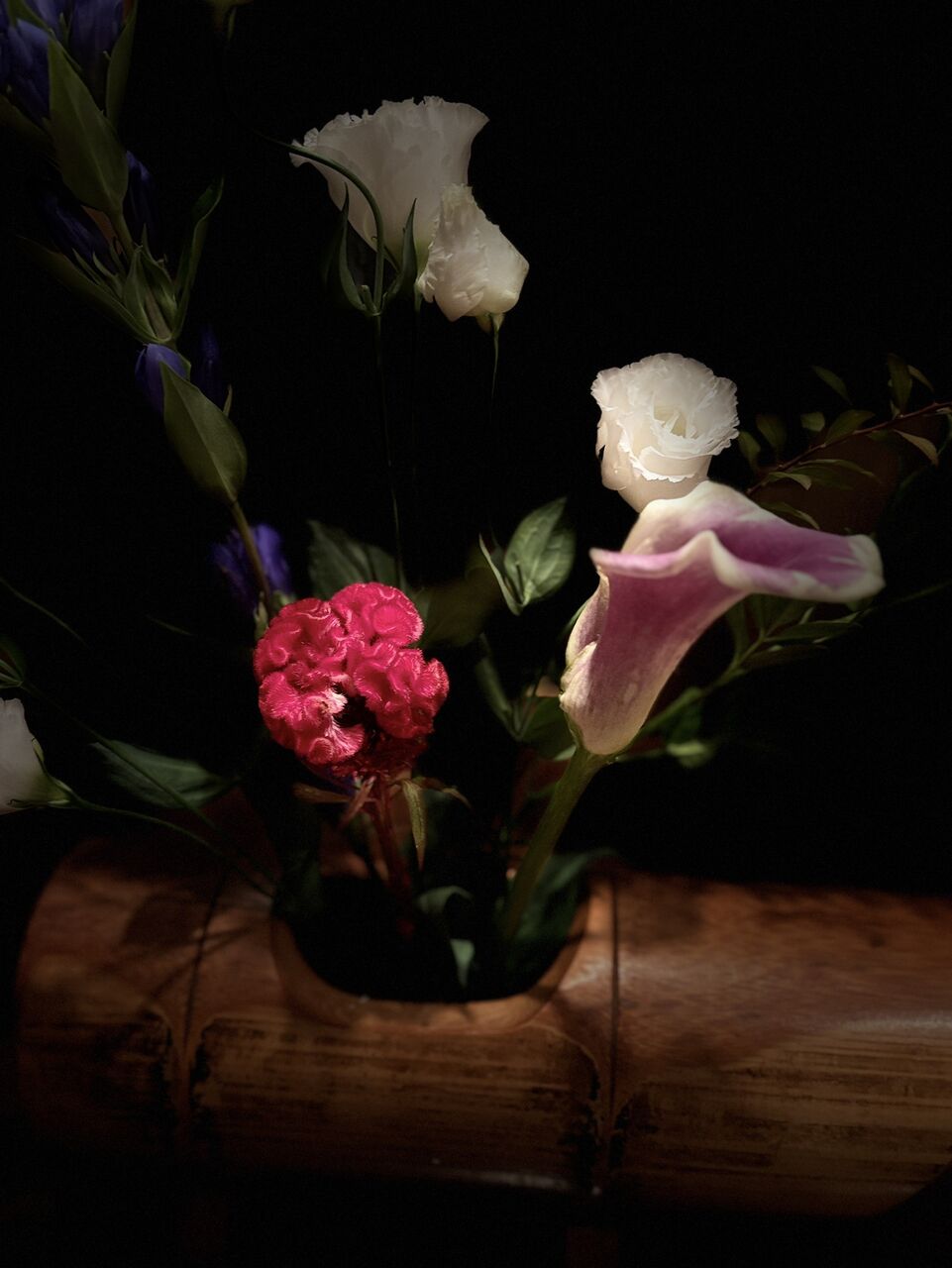 世界各地の 個性的な お花が 仲良く 一つの 器に 凛として佇んでいる。