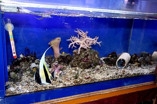 壁紙の模様を 見ながら 魚を鑑賞することになる。
