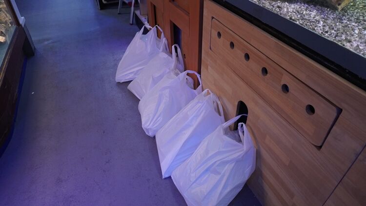 配管もすべてできているので、セッティングはヒーターをろ過槽スペースに置いて、ろ材、底砂、海水、活性炭マット、を入れて、硝酸塩還元筒にろ材、チップ、バクテリアを入れたら各電源を入れるだけ!
