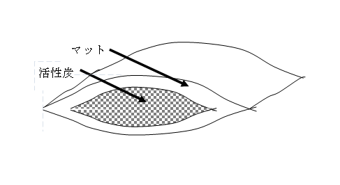オリジナル ヤシガラ活性炭は マットの中に 活性炭が挿入されています。