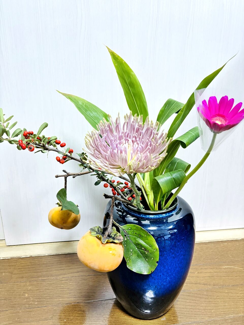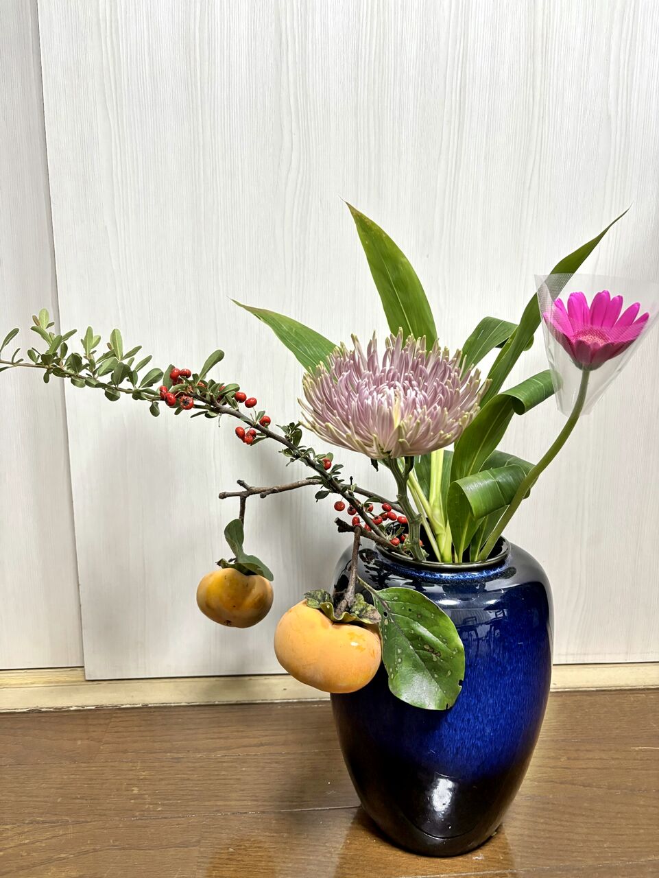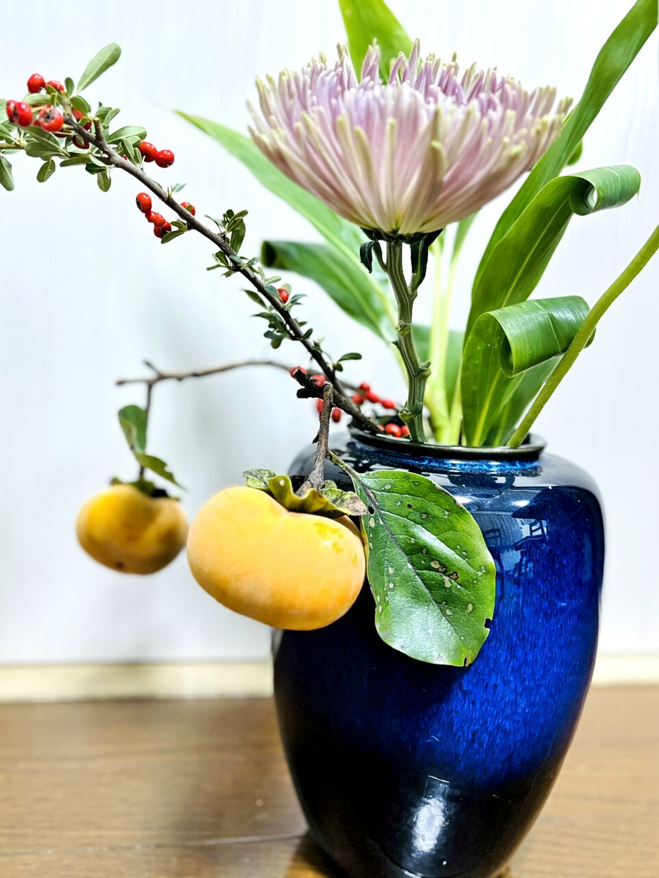 最後に登場するのが 最も目の前 いや 目先の下に 実をつけている 柿
