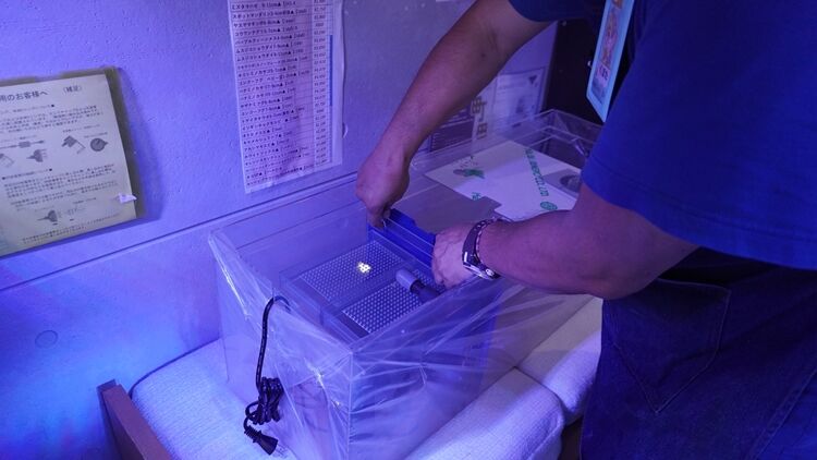 をつけ 水槽に 明るい光を 照射するのである。