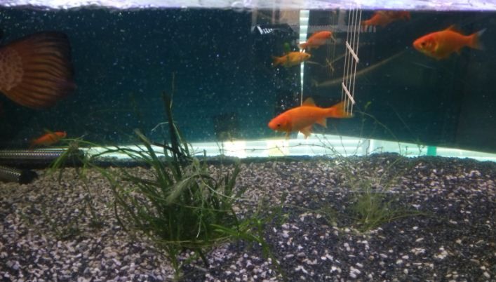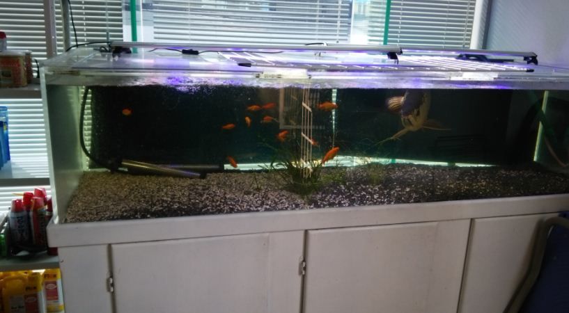 金魚達が大きく育っていたんだよ。会社のオフィスの水槽なんだけどね、